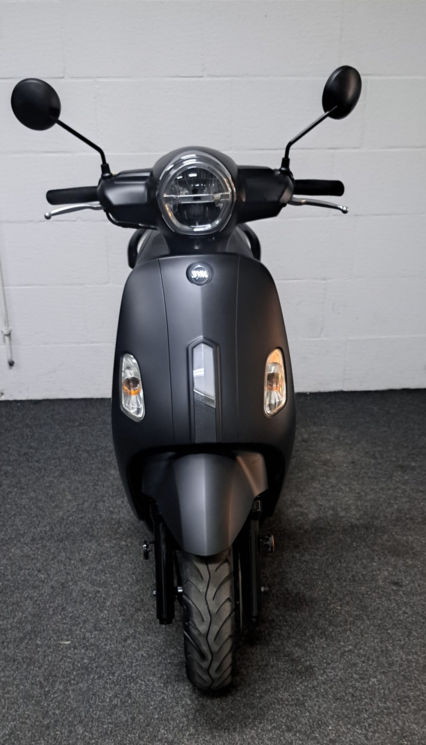Mat zwarte Sym Fiddle IV bromscooter